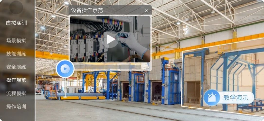 對于設備應用以及各類巡檢工作,眾趣科技可生成各類模擬仿真實訓內容,并嵌入圖文、視頻教學等進行線上操作演示,輔助新員工掌握應急技能、巡檢技能、常識等。同時,對于工廠車間等場所,客戶無需到現場就可以身臨其境的參觀體驗,高效提高客戶信任度。