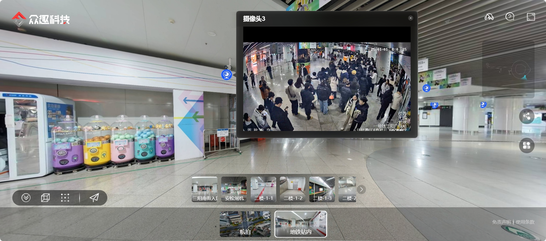 這一技術突破,無論是繁忙的交通樞紐,還是復雜的地下通道,眾趣科技都能提供清晰、直觀的三維可視化模型,構建了完整的交通公共設施三維可視化模型,讓交通公共設施的管理者仿佛擁有了“上帝視角”,從高空俯瞰整個交通網絡,同時深入地面及室內空間,進行精細化管理。