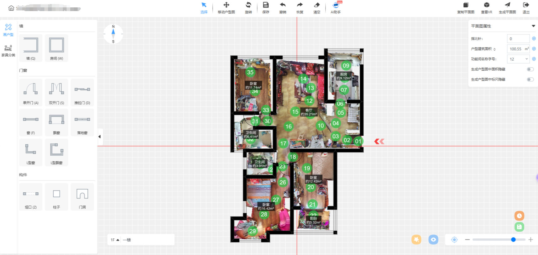 自動化戶型生成:基于識別結果,系統自動生成符合行業標準的戶型圖,包括墻體厚度、房間面積、門窗位置等關鍵信息,達到了非常高的精準度。