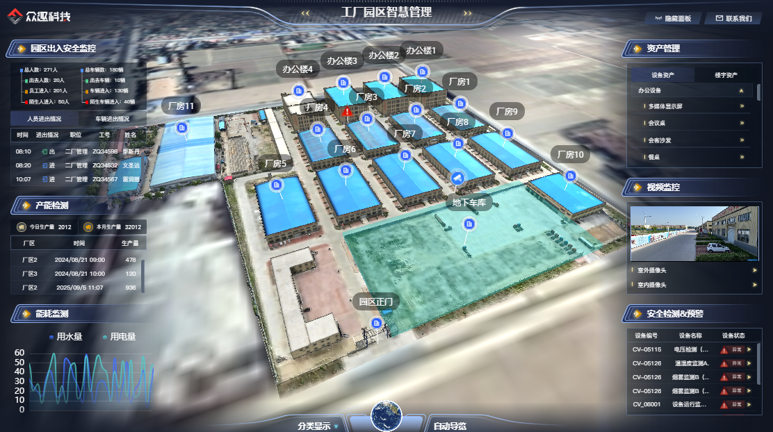 2. 實時動態(tài)管理:集成物聯(lián)網(wǎng)設(shè)備、監(jiān)控與傳感器,打通 “數(shù)據(jù)采集 - 實時監(jiān)測 - 智能分析” 全鏈路,構(gòu)建超越物理空間的數(shù)字孿生系統(tǒng),實現(xiàn)園區(qū)狀態(tài)實時可控。