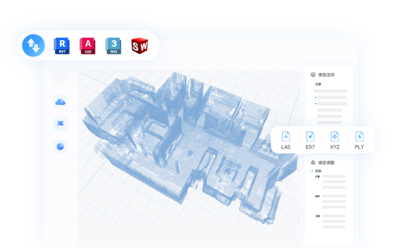 同時,可開放集成三方三維模型、全景照片、虛擬模型、傾斜攝影模型等多元數據,支持 Ply、E57、XYZ、LAS 等點云格式文件導出,無縫銜接 BIM/CAD 等專業軟件,真正讓行業用戶能夠有所選,有所用。