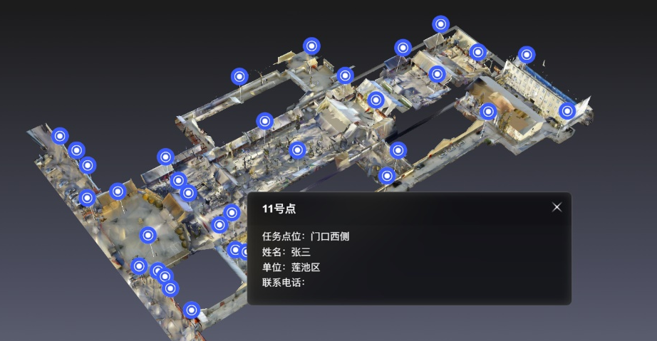 通過眾趣 A300 Pro 3D 激光掃描儀真實還原重保場景,重保工作人員可在不受環境限制的情況下進行預演練習,聯動重保場景的物聯網設備及攝像頭,模擬重保工作的前期警力部署準備工作,打破傳統各警種各自為戰的隔閡,提高公共安全管理的協同性和效率。